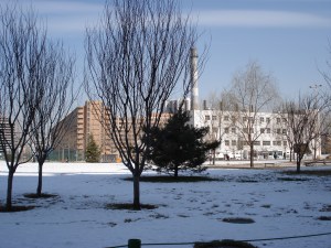 After the registering finished, we stroll around UIBE with Greatwall, to take photos together. We arrived at the east side of the campus, which there’s a small park in there. It’s so beautiful, with the snow cover the park. With the sunny weather, make it more beautiful.