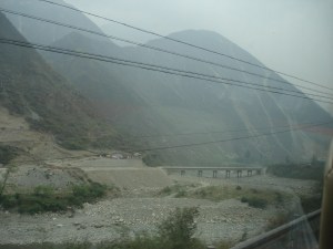 The weater is cool at 成都 Chengdu, because it’s early spring. We passed the river, mountain and cliff.