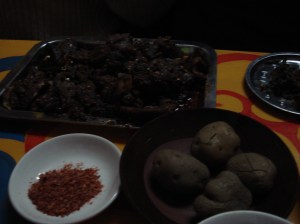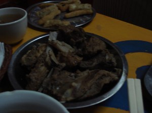 Finally we arrived at 九寨沟 Jiuzhaigou. We eat dinner at one of 九寨沟 Jiuzhaigou Local’s house while enjoy their singing and dancing. The famous food in here is lamb meat 羊肉 yang rou (lamb meat) and Yak Meat (kind of cow) 牛肉 niu rou with famous spicy powder, Mala 麻辣 from 四川 Sichuan.