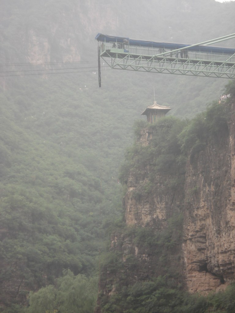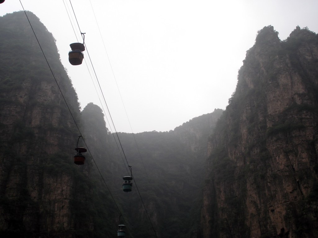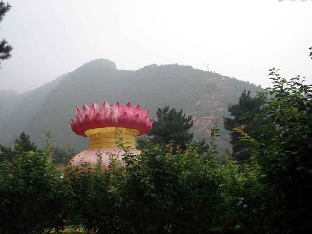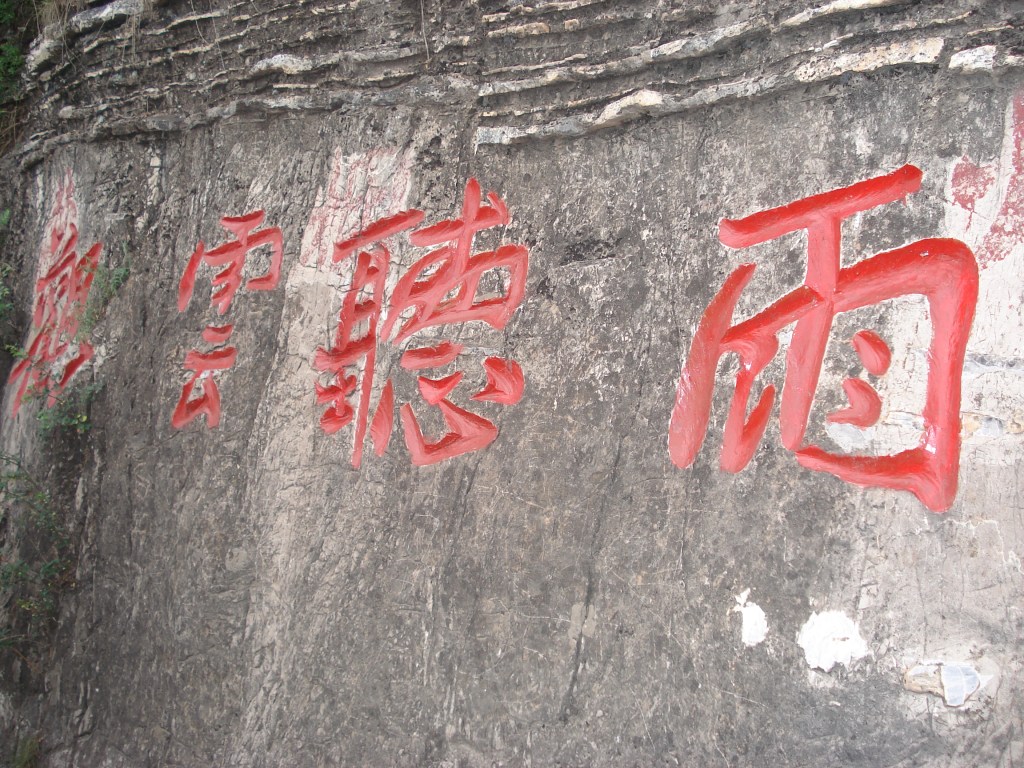 Long Qing Xia 龙庆峡, often called Long Qing Xia Gorge. The gorge, reputed to be the “Little Three Gorges”, features clear water, wooded mountains, and wonderful karst caves. The gorge’s main attractions are the Longqing Gorge Cruise, Baihua (hundred Flowers) Cave, and the Shenxianyuan (Immortal) and Jingang temples. Near the entrance, a grand waterfall plummets down 50 meters (164 feet) from the dam above. A long, dragon-shaped escalator carries visitors to the dam, where the cruise begins. On both sides, eerie mountains and strange formations inspire visitors’ imaginations as they have for centuries. You can marvel at the huge, natural Buddha stone and a hill rising from the water like a great bell. Another hill, named Fengguan (Phoenix Coronet) Isle, is considered the symbol of the gorge. Fengguan is surrounded on three sides by water and closed off by high mountains on the fourth. (credit)