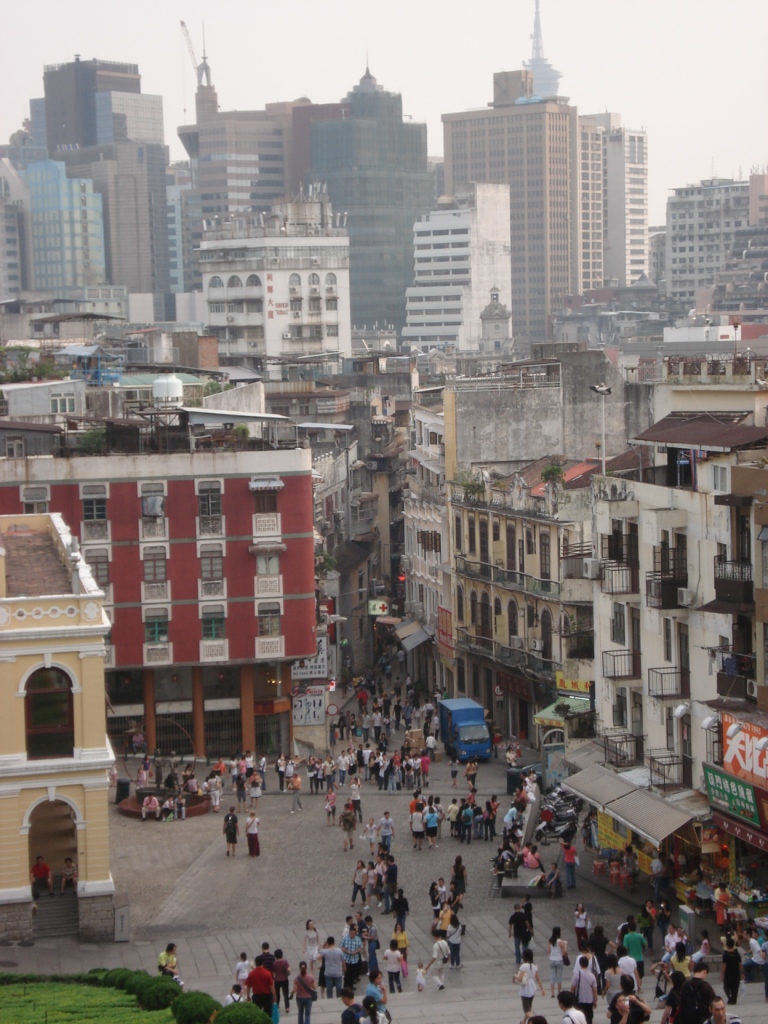 The Senado Square, or Senate Square Largo do Senado 議事亭前地is a paved town square in Sé, Macau, China and part of the UNESCO Historic Centre of Macau World Heritage Site. It is an elongated triangular shaped square and connects Largo do São Domingos at one end and Avenida de Almeida Ribeiro on the other. It covers an area of 3,700 square meters (4,425 square yards).