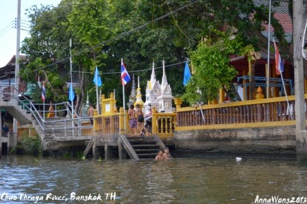 When we take trip on boat at Chao Phraya River, we drop by Wat Talingchan Floating Market. It sells snack and food.