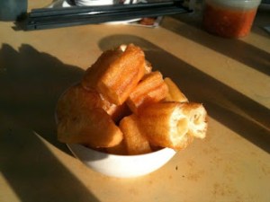 This morning, we ate breakfast at Alor Street. There’s chinese restaurant which serve breakfast. We ate poridge and noodle. And buy some Cahkwe / Fried Breadstick / 油条 (you tiao). I think there’s nothing special with the food, just usual breakfast.