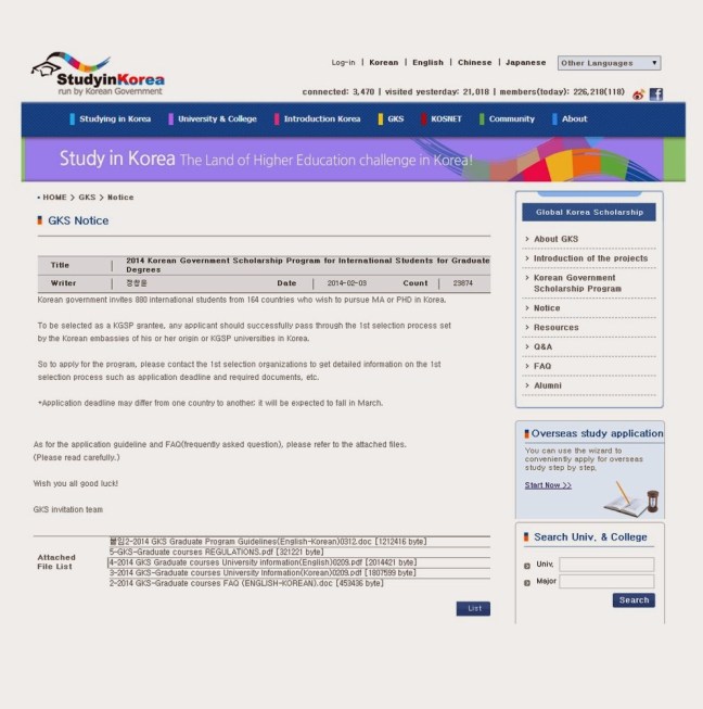 Finally, the notice is come out. Usually, the notice will come out on early February each year. If you have desired to apply scholarship at South Korea, then never missed the notice.