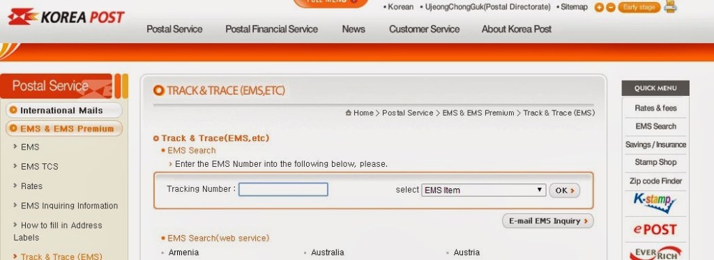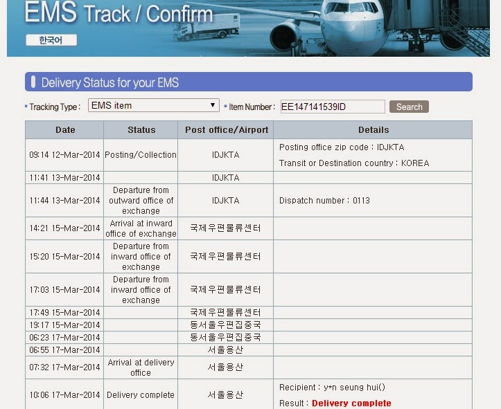 I used EMS Korean Tracking, to see where is my documents.