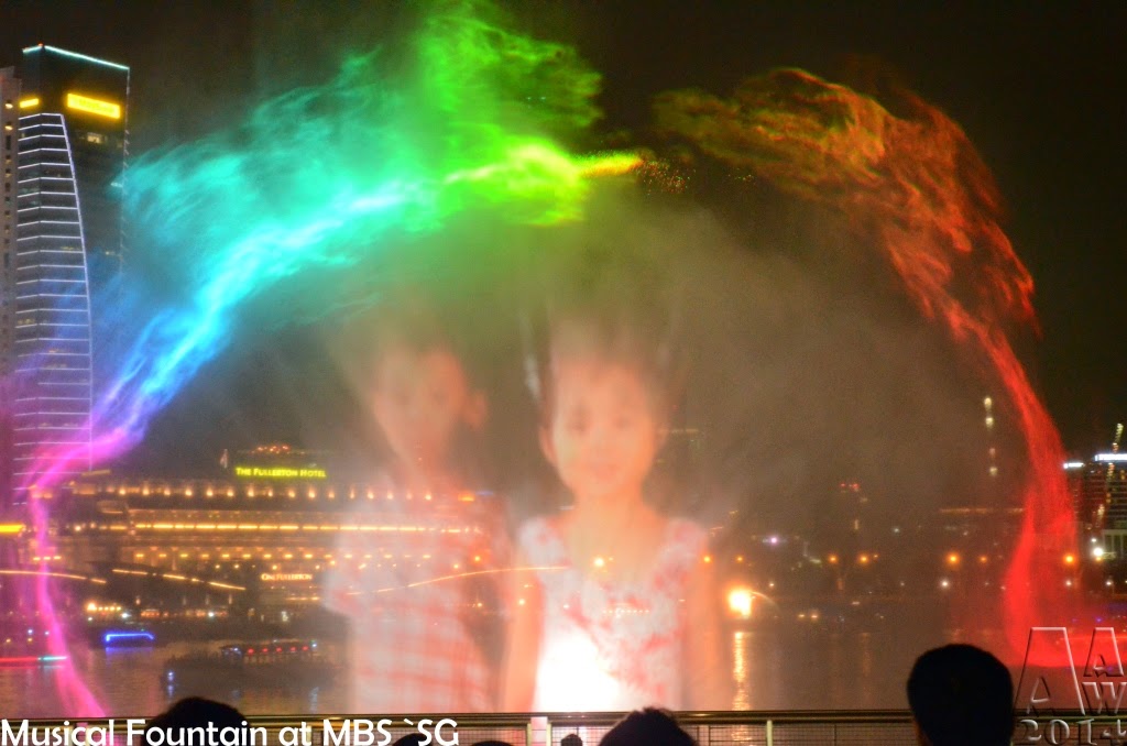Then we go to the Music Fountain show area, and sit there waiting for the show and enjoy the night scene of Singapore.