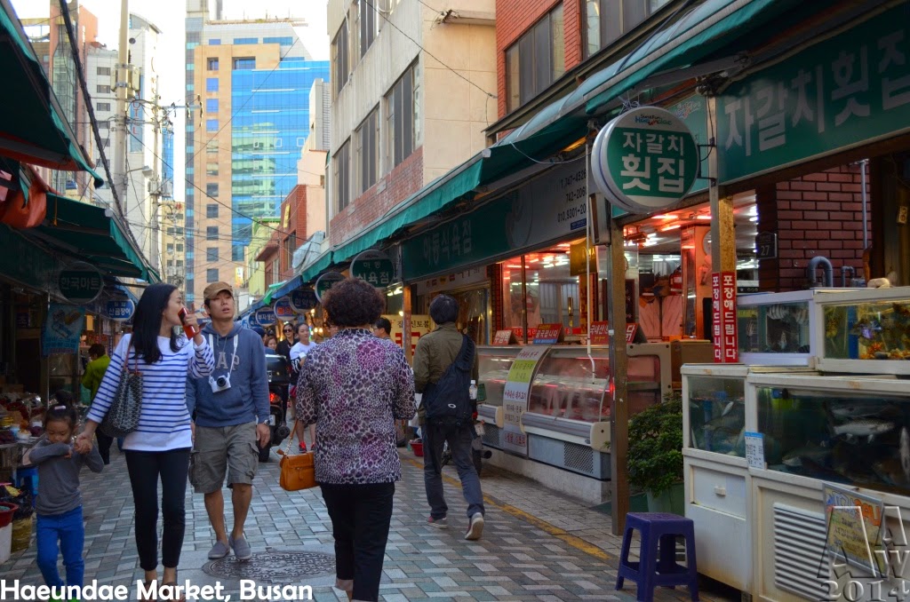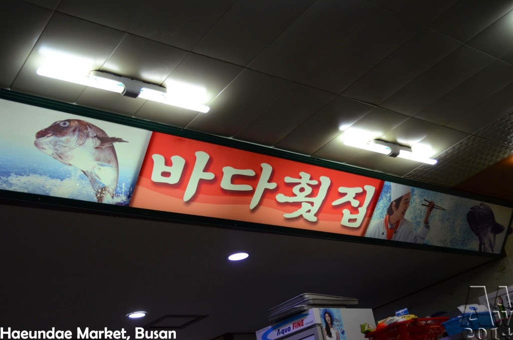 Because it’s in Haeundae Beach, so it means we have to eat seafood. Then we go to 해운대시장 Haeundae Market. The market looks nice, and sells many fresh seafood and vegetables.