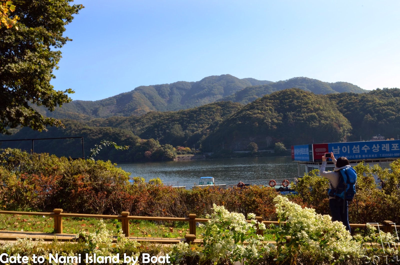 Then we ride a ferry. The scene is beautiful. It’s so many people because Nami Island is one of top tourism in Korea. Just make sure you got a place in the side of the ferry boat. So you can enjoy the scene.