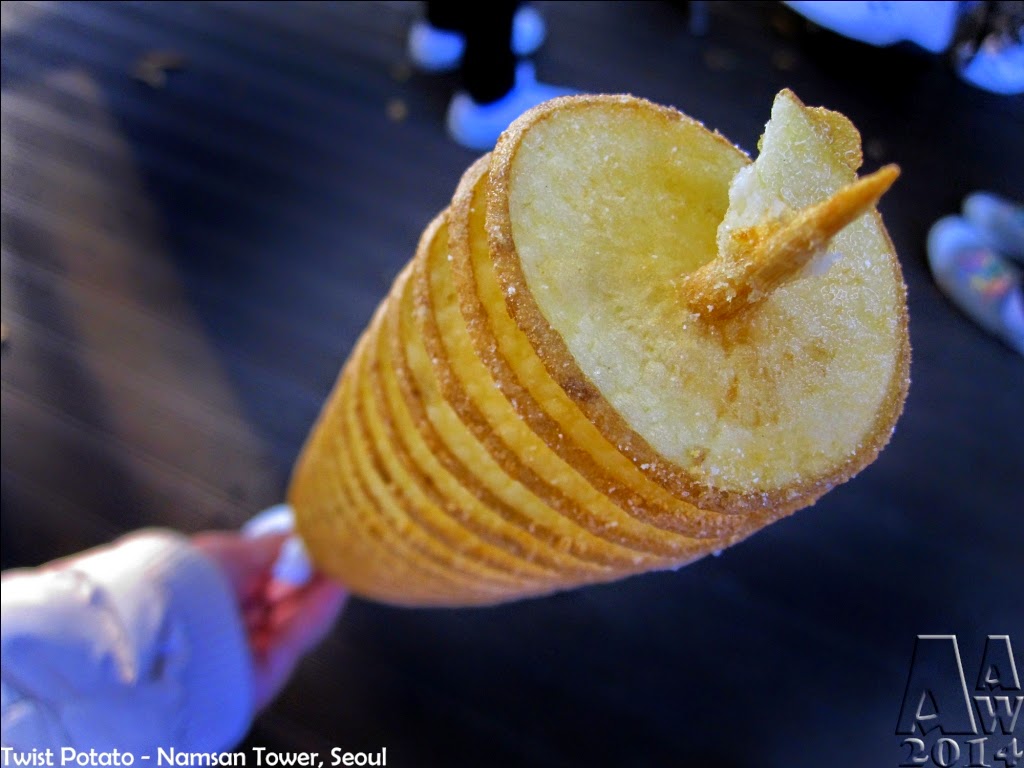 It’s beautiful. We enjoy the view for a while. Then we go back to cable car. On the way back, we drop by a little food court and buy Twist Potato. It’s delicious. Too bad, the weather is more and more cold. When we eat the potato twist, firstly it’s hot. But in the end, the potato twist turn cold.