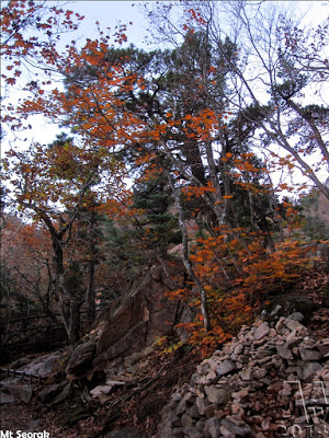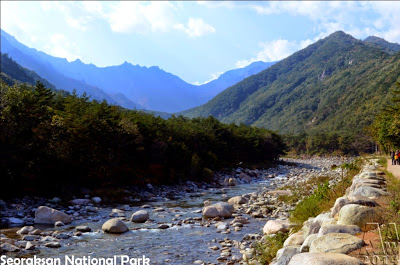 The park is spread across 4 cities and counties: Sokcho, Inje, Goseong and Yangyang. The highest peak is Daecheongbong; to the east is OeSeorak and to the west is NaeSeorak, which is divided again into North NaeSeorak and South NaeSeorak. North NaeSeorak is composed of Bukcheon, which flows to Ingyecheon and Baekdamcheon streams. There are numerous valleys in NaeSeorak. Follow the Baekdamcheon valley where all the streams meet and you will reach Baekdamsa Temple, which is known for its beautiful scenery. Upstream there is Gayadong valley and Suryeomdong valley, and past Yeongsiam and Mangyeongdae there is Madeungryeong ridge (1,327m) that leads to Seorakdong.