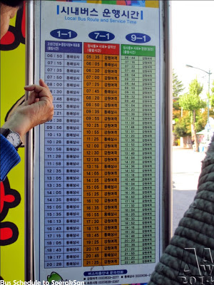 Arrive at Sokcho, we ride bus to Seoraksan National Park, Here’s the bus schedule.