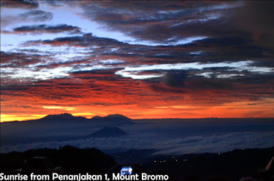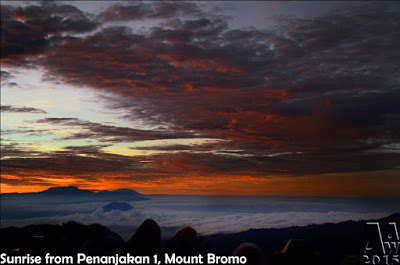 At 04:30, we arrive at Penanjakan 1. There’s so many people already. Our jeep can’t park in the top so we park about 200m from the stairs to Penanjakan 1. With sleepy and dark, we walk to Penanjakan 1. So don’t forget to bring your flashlight. Many motor rider offer their ride to the top if you don’t want to walk.