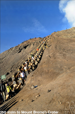 I choose to ride the horse to safe time. The horse owner will give us their name card so we won’t lost. They sent us until the stairs to the crater and they will wait for us there. Don’t be afraid to ride the horse because the horse owner will always accompany you and guide your horse and also tell you what to do so you won’t fall from the horse. But it’s difficult to keep the balance while riding a horse. I will think twice to repeat it.. haha..