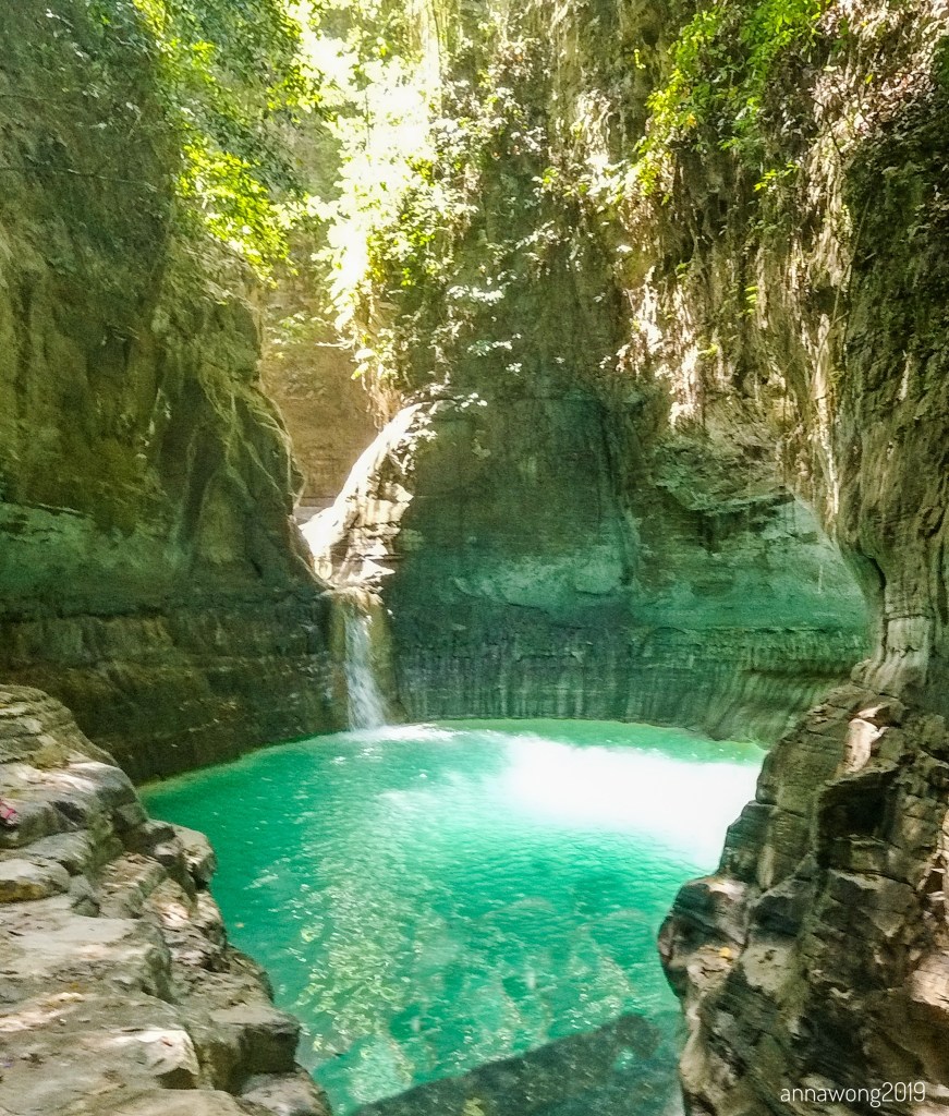 This is where we arrive at the waterfall. This is called the 1st floor of the waterfall. There’s 2nd floor and 3rd floor in the upstair. You can go there from where the water fall. Too bad, I forgot to record when our guide went there. He is vining from the side to the falling water just like monkey. If I didn’t hurt my knee, maybe I will try to go there to see the beautiful 2nd and 3rd floor. The pond is depth, very depth, maybe around 5 metres. But the one where we go down is very swallow.