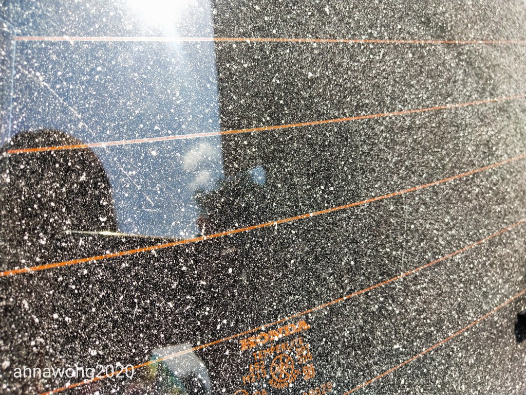 When we arrive there, actually the ash rain has been stop, or maybe very thin, because my car has ash in it’s whole body. At first we can’t see it but because my car is parking, and when we finish eating, you can see that it’s quiet a lot.