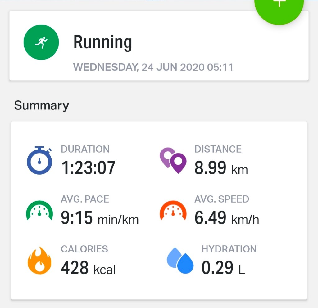 Since May 2020, I started to running again with my dad. And we run about 8.79 – 8.99km.